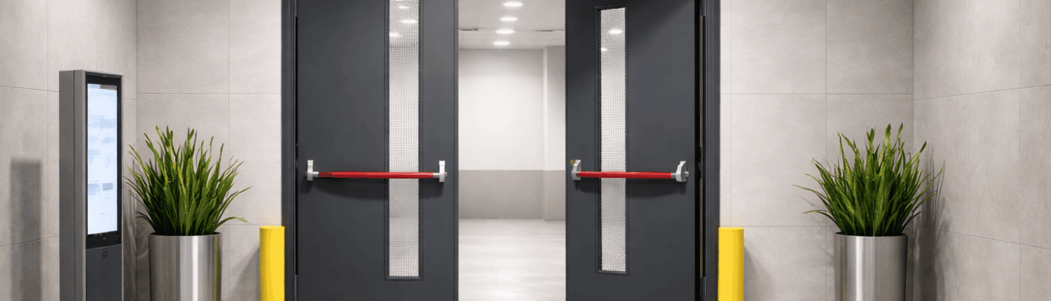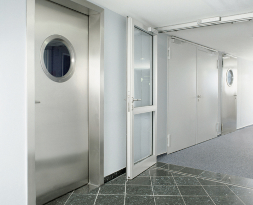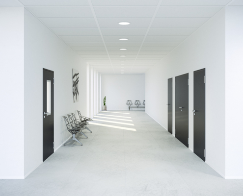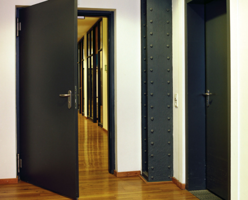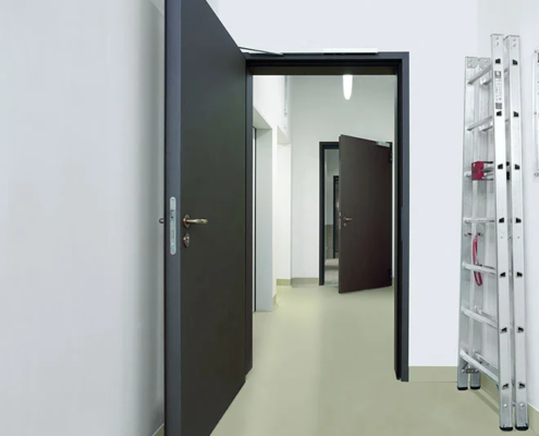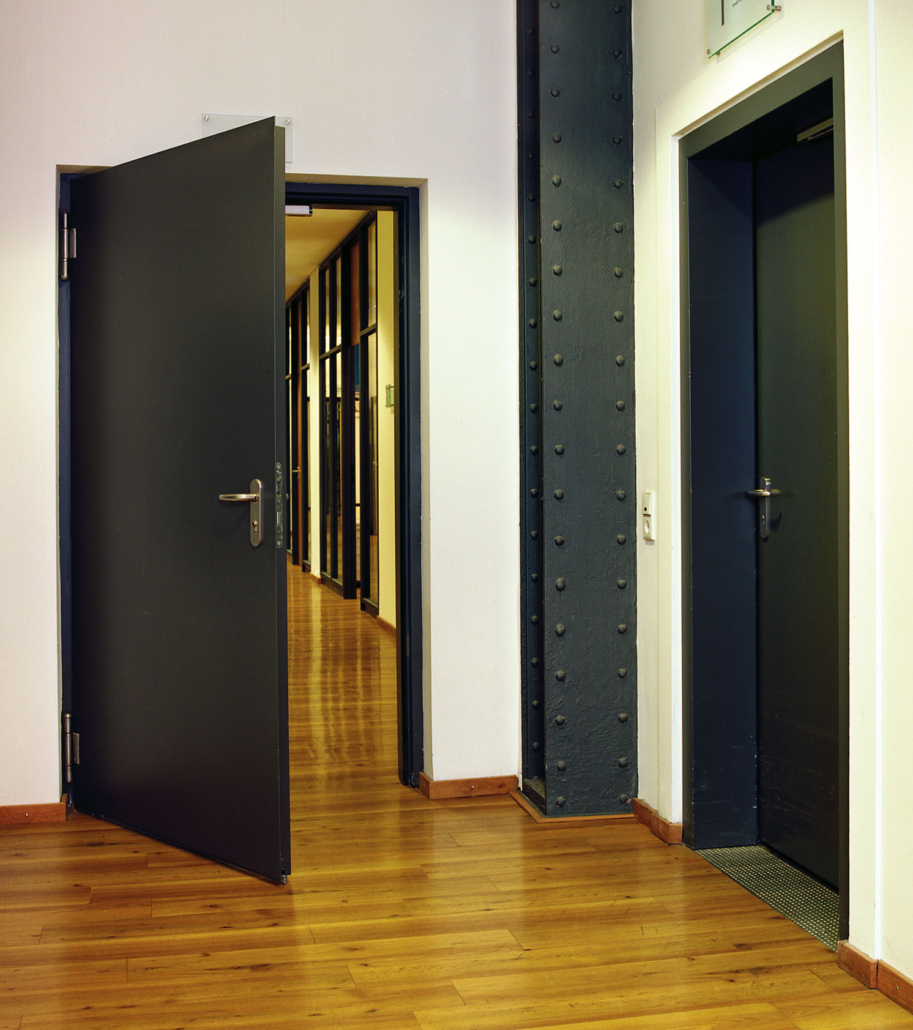 Feuerhemmende und feuerbeständige Türen (z. B. T30 / T60 / T90, EI-Klassen) für normgerechten Brandschutz in Fluren, Treppenhäusern, Technik- und Lagerbereichen.